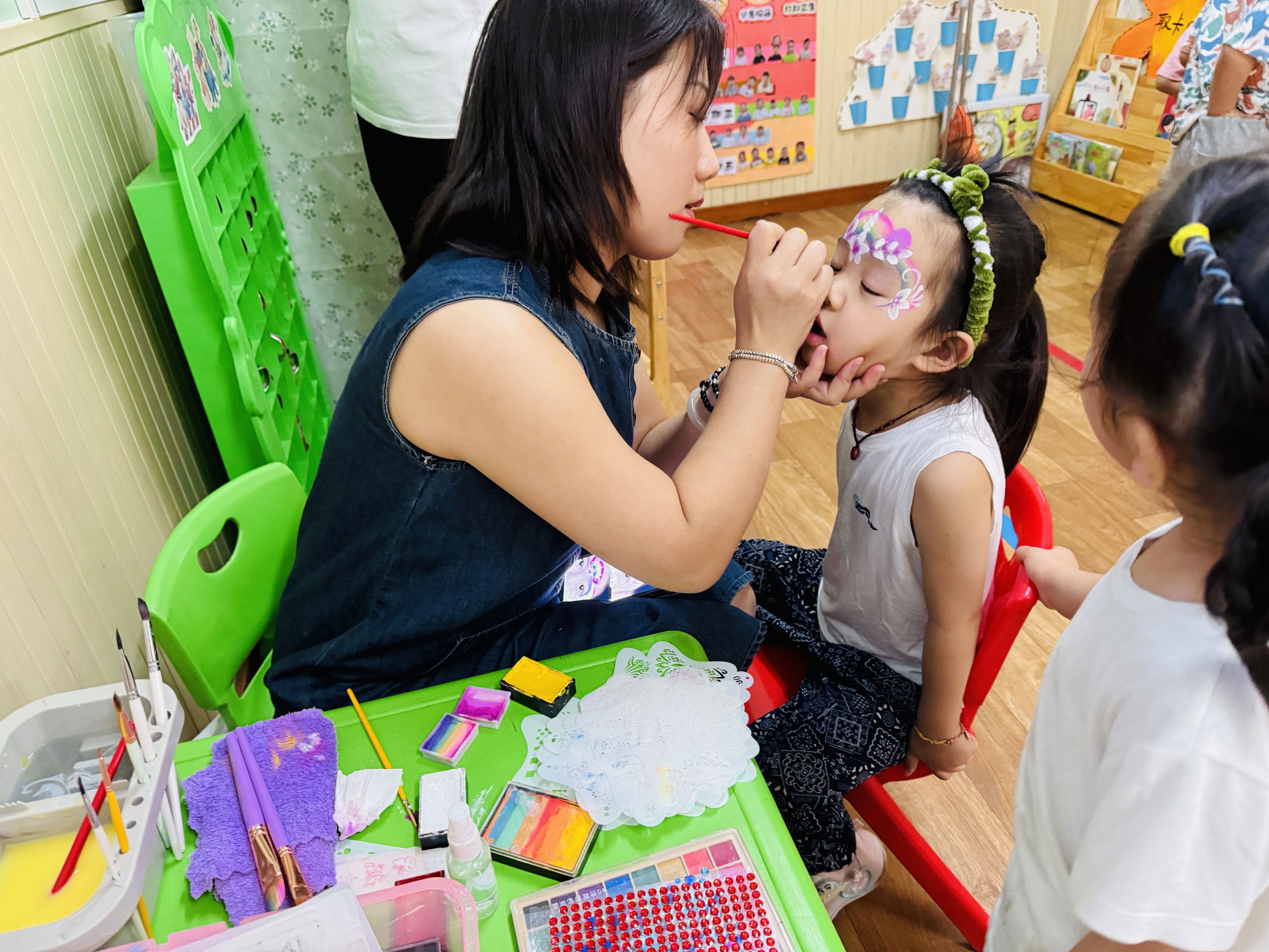 家长们纷纷走进课堂,家长们充分发挥自己的优势,为孩子们带来了一堂堂精彩纷呈的特色课程。中一班家长带来了《漆扇制作》,孩子们通过滴入漆料,搅拌,扇面放入水中等流程亲自参与制作过程,孩子们切身感受到了漆扇制作的神奇有趣。小二班家长带来的《面部彩绘》,通过五颜六色的画笔、让孩子们都变身为童话故事里的魔法小精灵,孩子们在游戏中体验到绘画的乐趣,能让他们的脸部变的更加生动有趣。中三班家长带来的《不挑食的小兔子》,以音乐律动为导入,融合了健康饮食教育,培养幼儿对食物的认知,从小养成不挑食、不偏食的好习惯,做健康宝宝。大二班家长带来的《篮球大作战》,通过游戏的形式,学习了篮球技能双手打v和两人合作运球,培养孩子们的反应能力和合作意识,让幼儿都能积极的参与到活动中。
